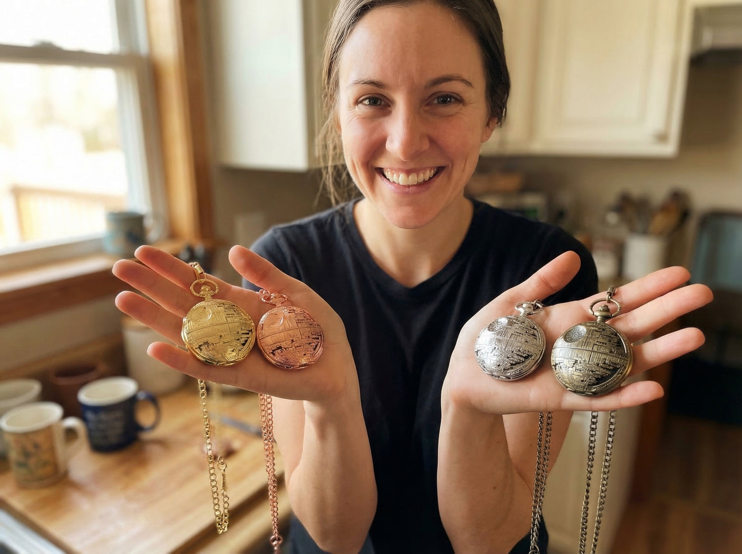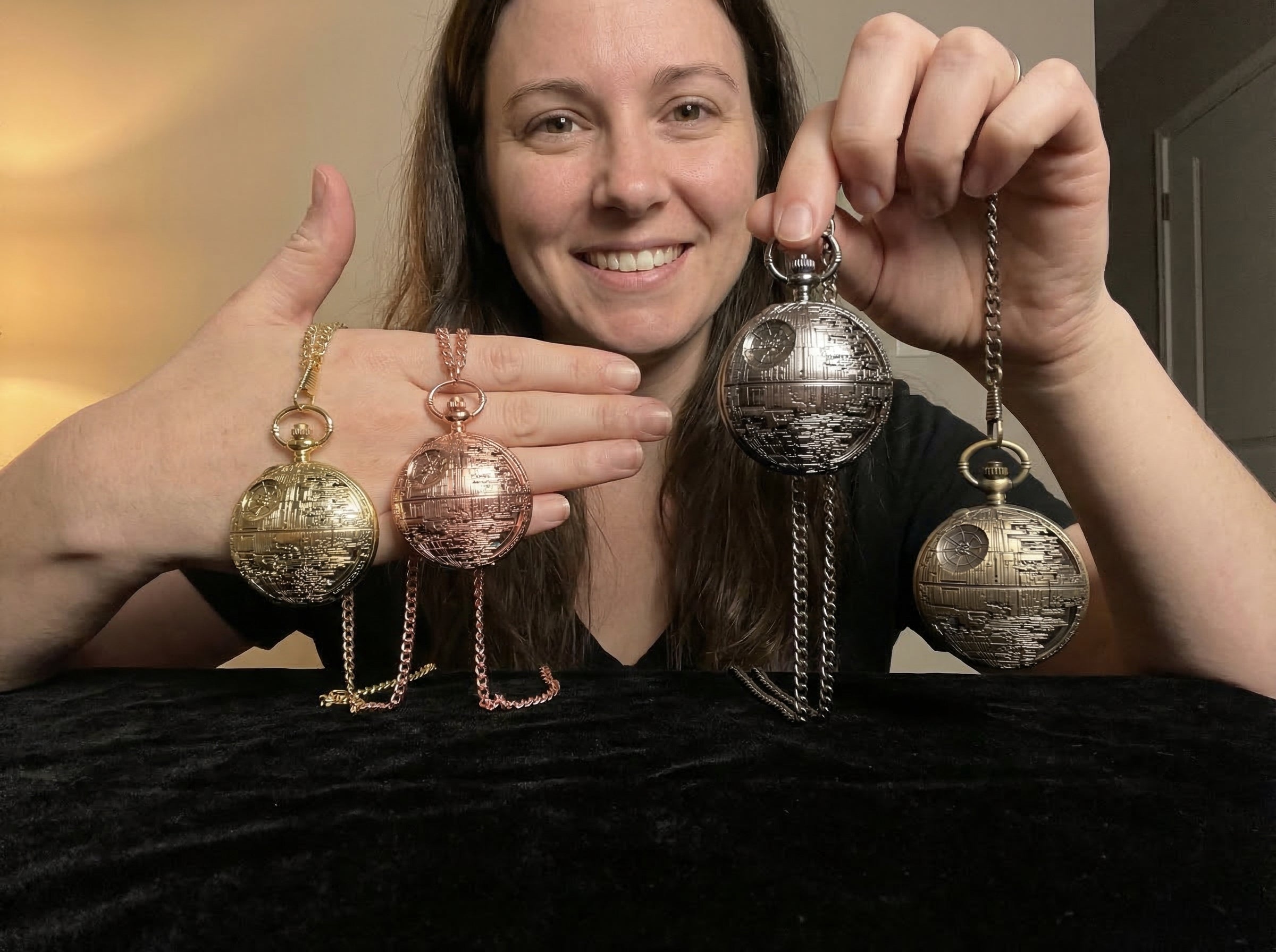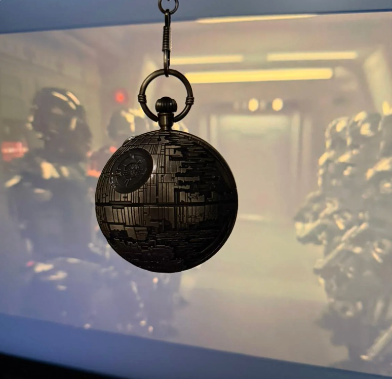 I've loved Star Wars my whole life. Not just the movies — the world, the ships, the details that most people walk right past. The Death Star was always the one that got me. This massive, terrifying, impossibly detailed thing just floating in space. I used to stare at it as a kid and think about every single panel and groove on the surface and who built it and how long it took. So I built my own version. Just smaller. And you can tell the time on it. I make every single one by hand because I want every person who holds one to feel what I felt as a kid staring at that screen. That feeling is the whole point.